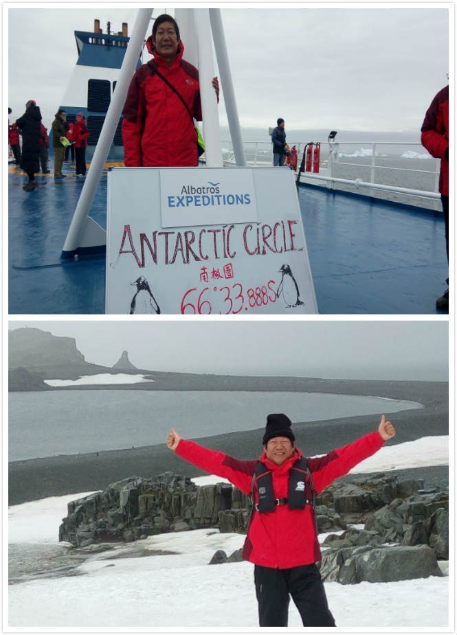 第九天:可以说是南极之行的高潮。早上,从梦中醒来,打开窗帘,惊奇发现,已经在一个非常漂亮的峡湾中,两边是冰川,水面上各种浮冰和冰山。这就是传说中的利玛尔水道。更让人惊喜的是,今天阳光灿烂,在阳光的衬托下,海水变得深蓝,与蔚蓝的天空交相辉映,使得拍出的每一张照片都非常漂亮。上午,登陆彼得曼岛。岛上有无数的企鹅,好像叫巴布亚企鹅。拍了几段企鹅视频,非常有感觉;下午,一路前行,到达天堂湾,登上洛克雷港,那是真正的南极大陆。好像有一个小房子,应该是哪个国家的科考站之类的,最主要的那是企鹅的栖息地,大量的企鹅生活在山坡上。更让人惊喜的是,有许多所谓的“企鹅公路“,那是企鹅们千万年走出的道路。我们在登山的过程中,必须避开企鹅公路,如果必须穿过公路,要观察企鹅是否在路上,看到企鹅过来保持安静且不能动,等企鹅先过,对此探险队执行得很严格。也有的企鹅表现得非常绅士,看到有人过来,直接站住,等人先过,然后再摇摇摆摆地过去。登上雪山,拍了一些照片。站在雪山上,看天堂湾,真有一种身在天堂的感觉。说起来,也算去过一些地方,但如果说有一种天堂感觉的,一是瑞士,二就是此处了。从洛克雷港口回来,有一个海上巡游,探险队的向导带我们去看海豹,第一块冰山上的海豹没有等我们靠近,就钻进海里了,只给我们留下个背影,而且还与我们藏起了猫猫,没想到,正在我们有些失望的时侯,向导发现前面有处冰山上有几只海豹,看上去有四五只,橡皮艇悄悄接近,我打开视频,结果真是不错,录了一个完整的视频,非常清晰,终于近距离看到了海豹。如果说,要总结一下今天,那可以用两个字:完美。
