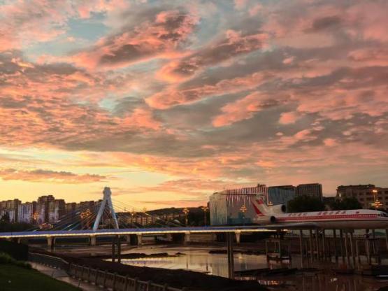 九月的内蒙小镇更藏着晴雨惊喜。晨起上班时雨丝纷纷,雨点溅落路面,迸溅如细碎的小烟花,在街灯红光里闪烁,打湿了赶路的裤脚;傍晚下班时天已放晴,夕阳将天空晕染成暖橘色,小镇的建筑、树木都镀上金边,白天的雨意全然消散。一天的奔波被绝美夕阳治愈,初入职场的忐忑也悄悄淡去。